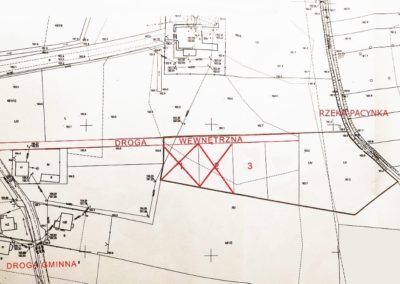 W wyniku podziału większej powierzchni powstały działki pod zabudowę jednorodzinną oraz droga wewnętrzna.